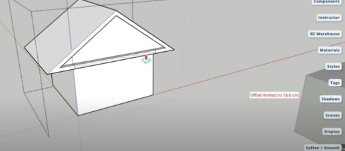 3. Use the Follow Me Tool: Extrude the roof’s triangular shape across the model.