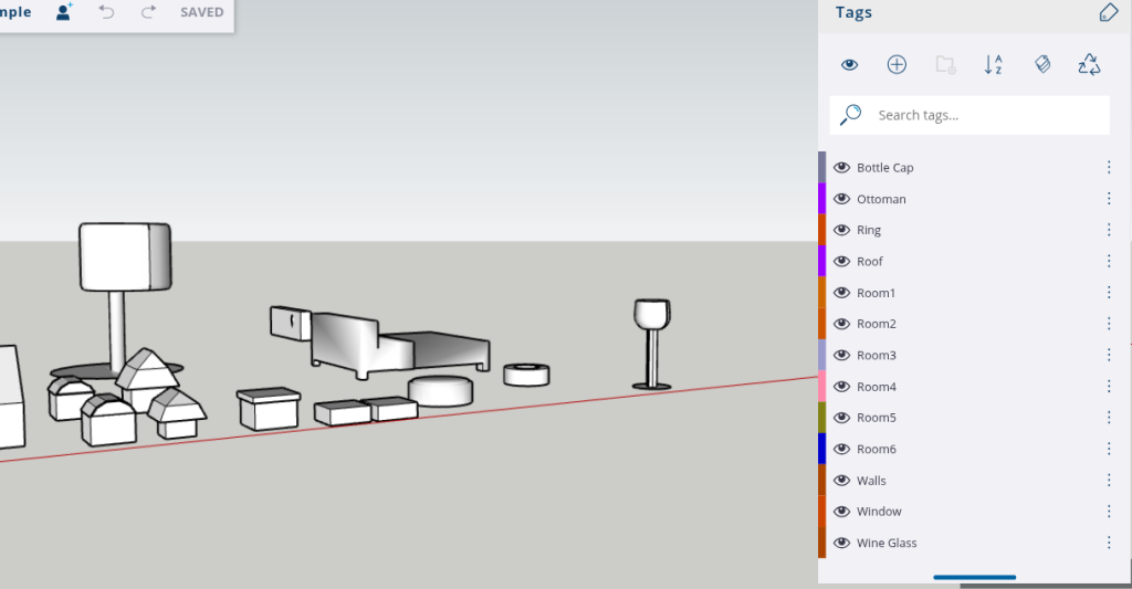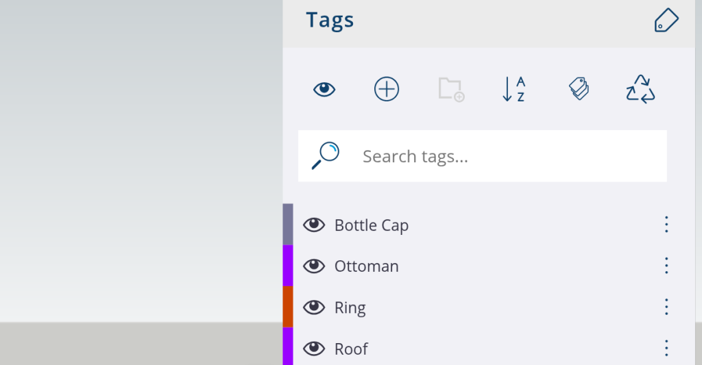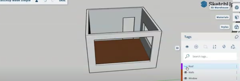 - Tags allow you to focus on specific sections of your design. For example, if you want to work only on the roof, you can hide the walls and windows.
